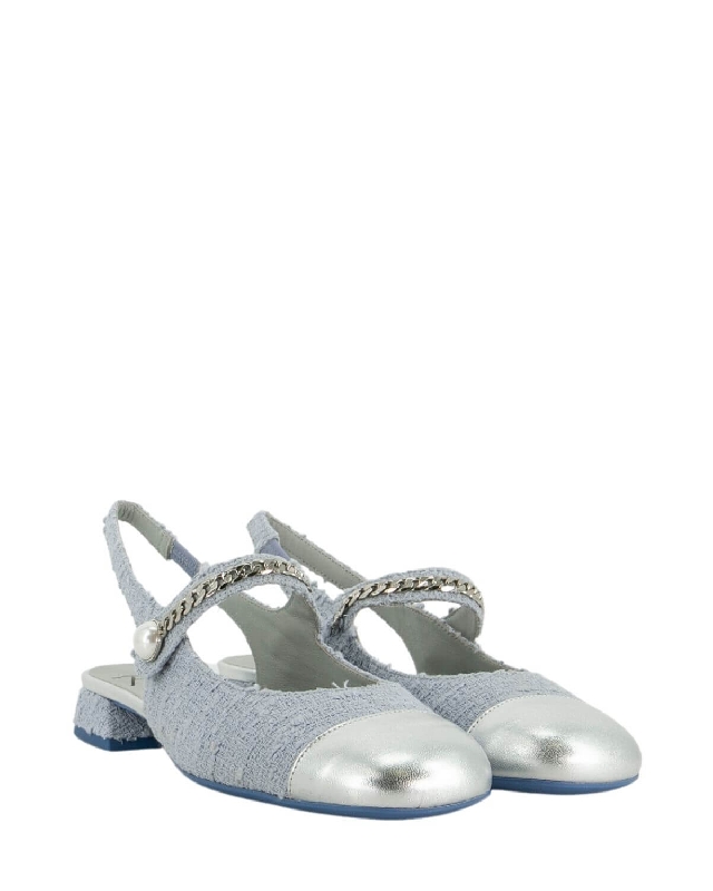 Schuh aus Stoff für einen eleganten und modernen Look mit Lederdetails. Riemenverschluss. Niedriger, breiter Absatz.