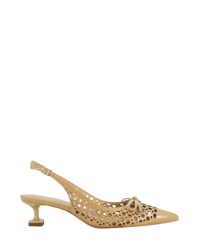 Schuhe aus gelochtem Leder. Duenner Absatz. Mittelhoher Absatz. Spitze Schuhe. Riemenverschluss. Die Farbe des Artikels kann, je nach Gerät, das für die Navigation verwendet wird, leicht variieren.