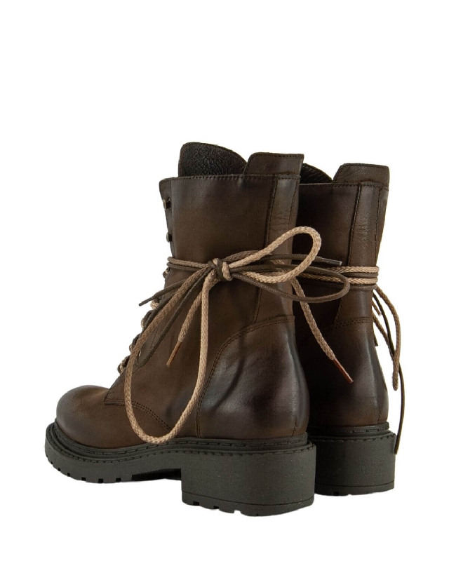 Springerstiefel aus Nubukleder. Verschluss mit doppelten Schnürsenkeln. Stollensohle.