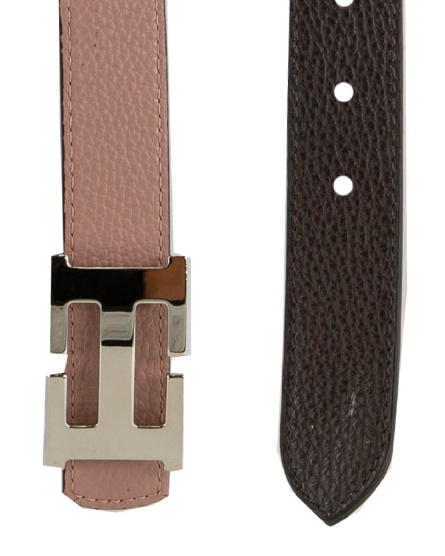 Doppelseitiger Wende-Gürtel aus Kalbsleder mit Hirschmotiv. Silberfarbene Schnalle.