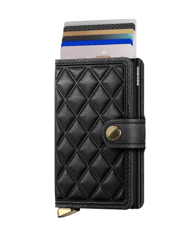 Un portafoglio di grande prestigio, caratterizatto da un rilievo a forma di diamante disegnato su misura e da una pelle ovina di altissima qualità. Il bottone di chiusura piatto color oro sottolinea il profilo elegante di questo portafoglio. Un dettaglio di lusso per tutti i giorni.