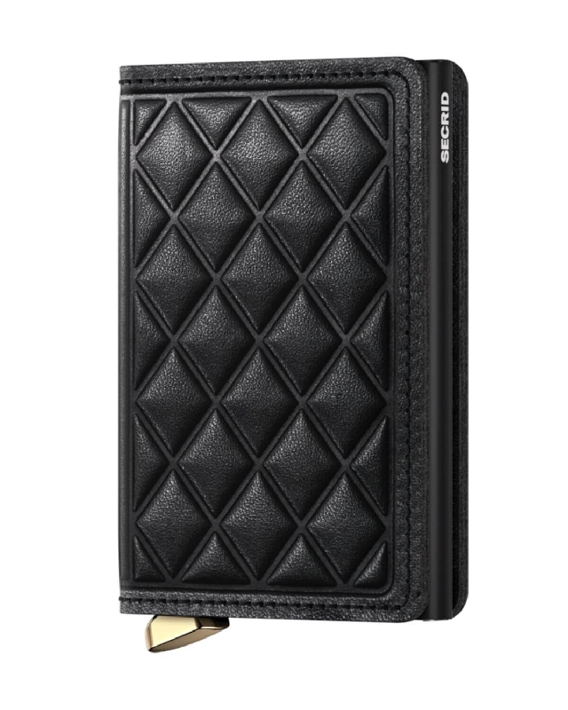 Eine sehr prestigeträchtige Brieftasche, die sich durch eine speziell entworfene rautenförmige Prägung und ein hochwertiges Schafsleder auszeichnet. Der flache goldfarbene Verschlussknopf unterstreicht das elegante Profil dieser Brieftasche. Ein luxuriöses Detail für jeden Tag.