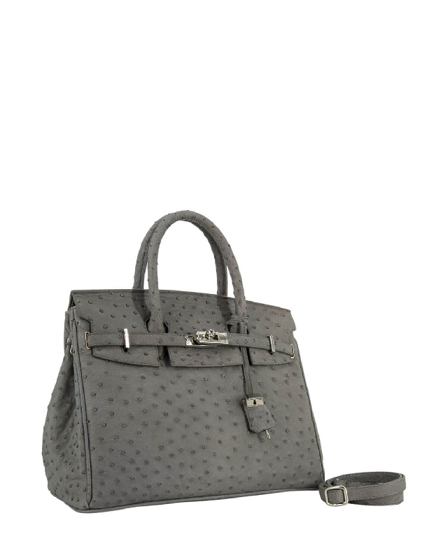 Material: Echter Strauß - Modell: Handtasche mit Henkel - Lederfutter - Überschlag und Umschlag - Schultergurt mit Karabinerhaken und verkürzbarem Schieber - Innenfach mit Reißverschluss - Innentasche mit Reißverschluss - Innentasche mit Handyhalter - Innentasche Dokumentenhalter Leder - Metallfüße Die Farbe des Artikels kann, je nach Gerät, das für die Navigation verwendet wird, leicht variieren.