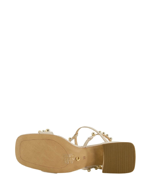 Lederschuhe. Mit Nieten abgesetzt. Breiter Absatz. Niedriger Absatz. Breite Schuhspitze. Gummisohle. Riemenverschluss. Die Farbe des Artikels kann, je nach Gerät, das für die Navigation verwendet wird, leicht variieren.