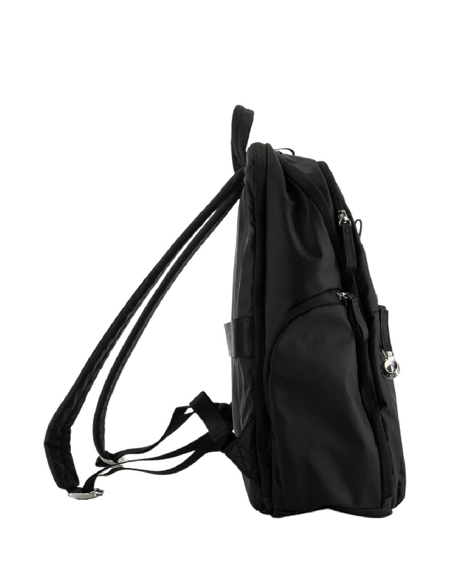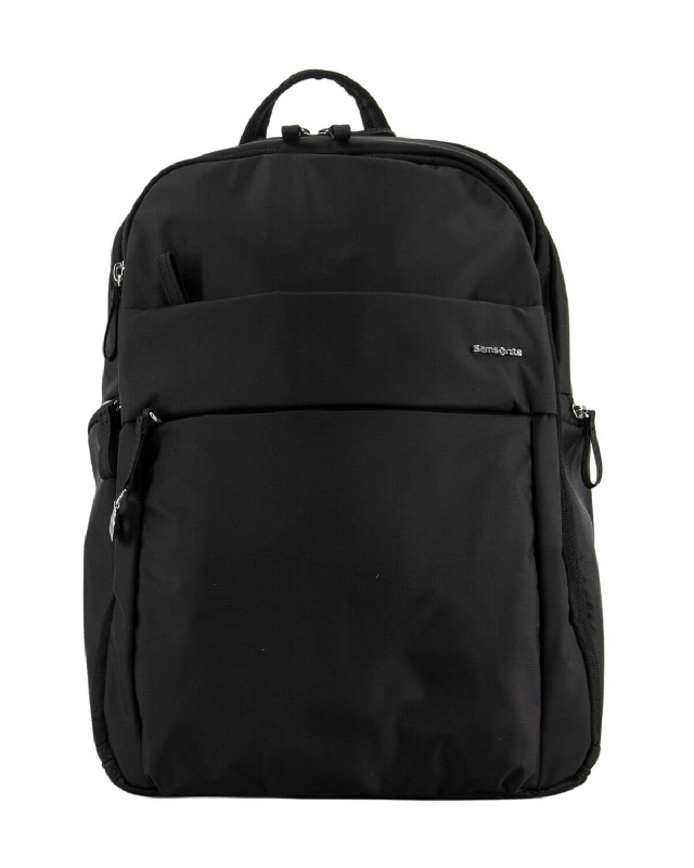 Glänzende Reißverschlusszieher aus Nickel. Außenorganisation mit vielen Taschen. Samsonite-Logo aus Metall.