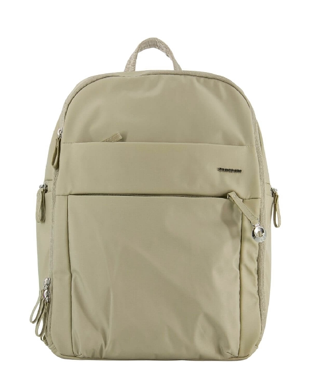 Glänzende Reißverschlusszieher aus Nickel. Außenorganisation mit vielen Taschen. Samsonite-Logo aus Metall.
