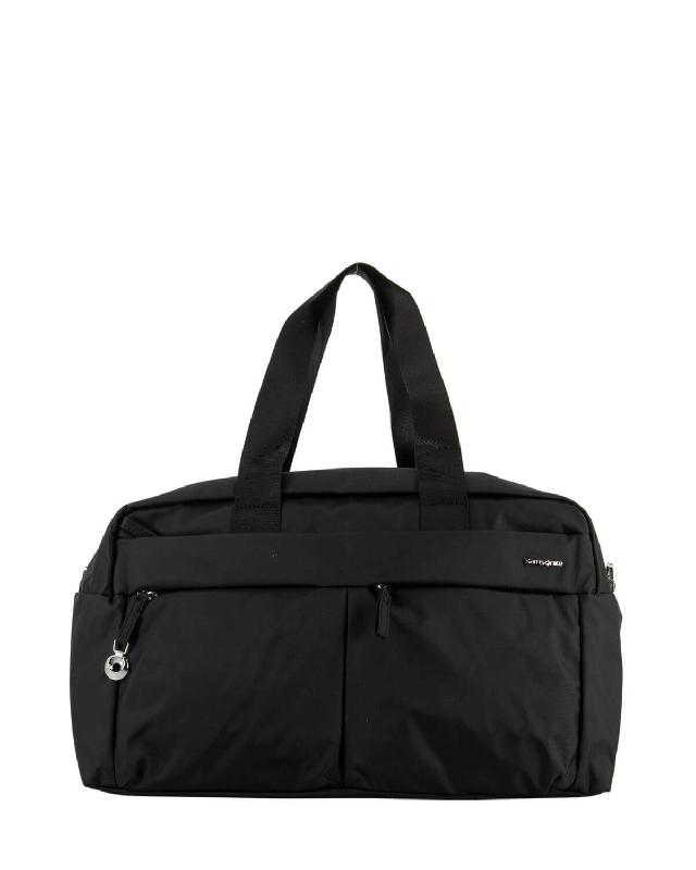 Glänzende Reißverschlusszieher aus Nickel. Außenorganisation mit vielen Taschen. Samsonite-Logo aus Metall.