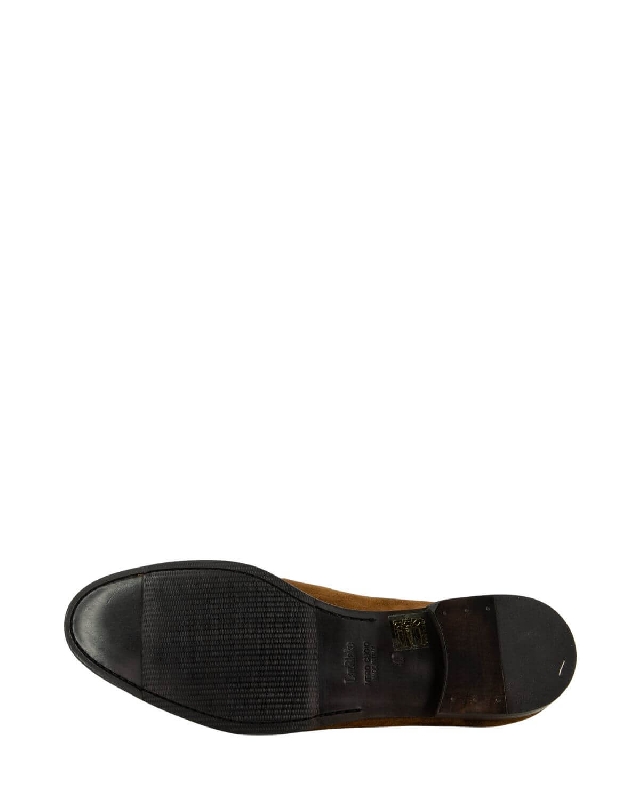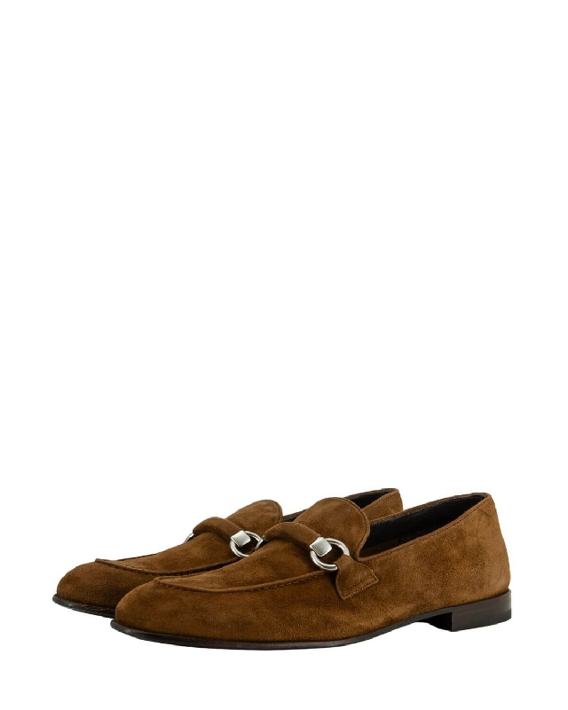 Mokassins aus Wildleder mit Hufeisen. Runde Spitze. Gummisohle.