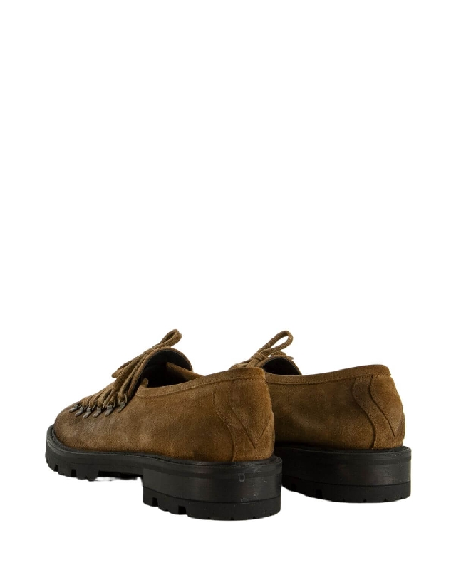 Lederschuhe. Niedriger Absatz. Runde Form. Gummisohle. Schnuersenkel(verschluss). Die Farbe des Artikels kann, je nach Gerät, das für die Navigation verwendet wird, leicht variieren.