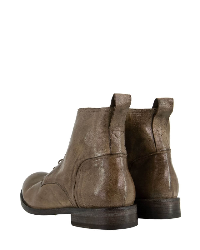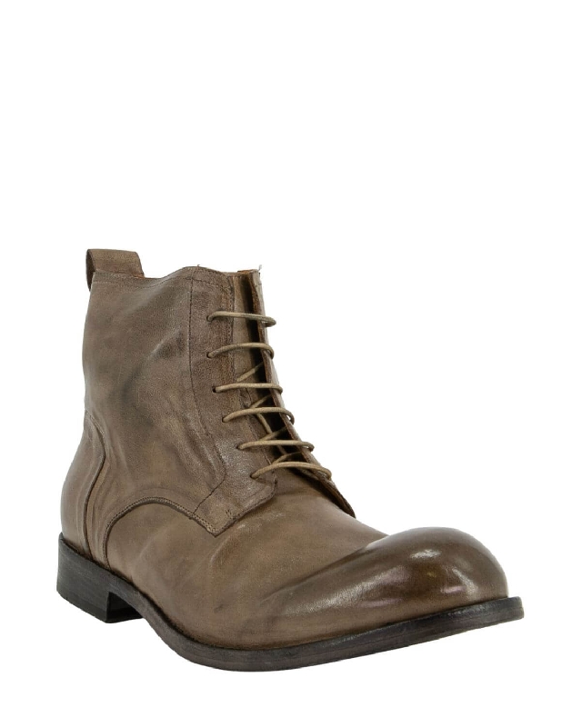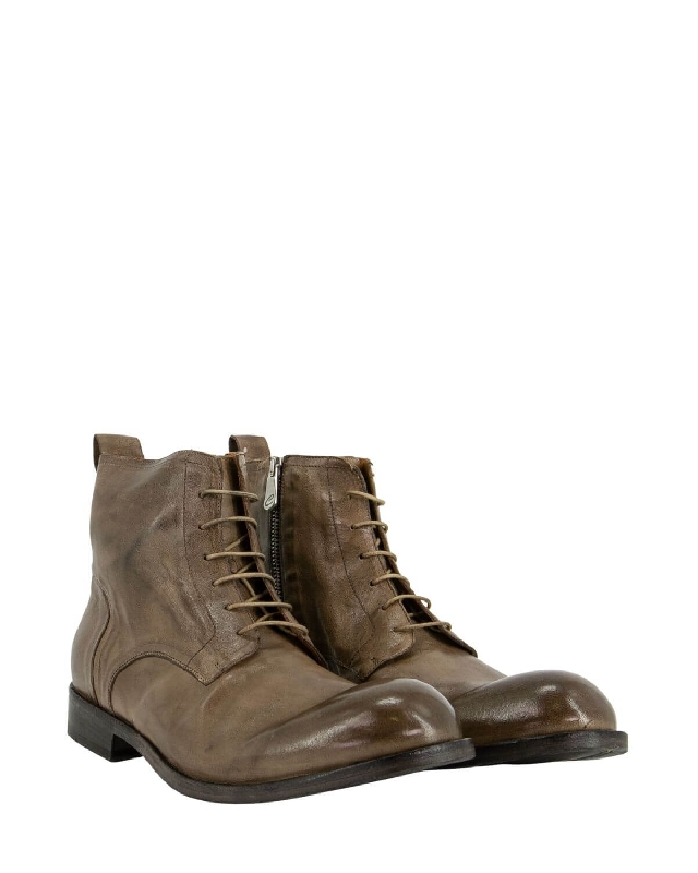 Hohe Lederschuhe, doppelte Befestigung sowohl Schnürsenkel und Reißverschluss.