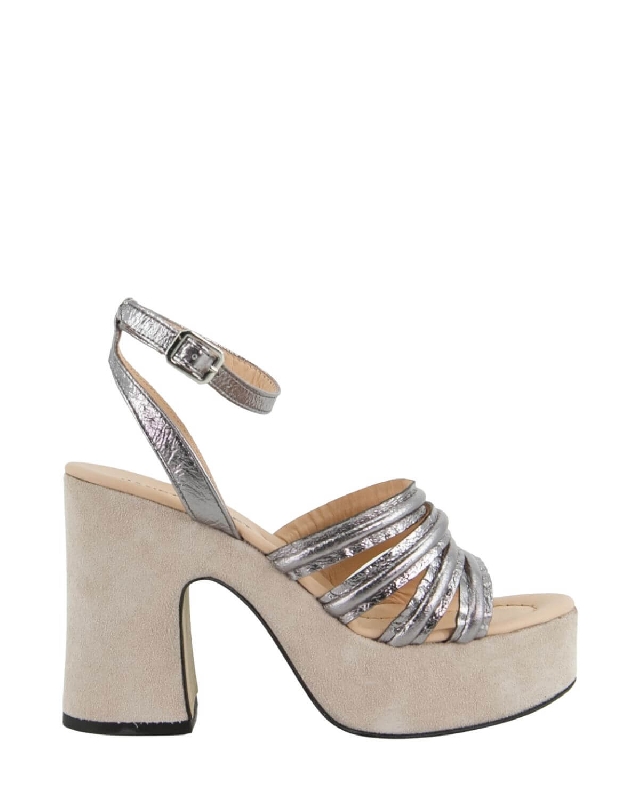 Sandalen aus Leder. Breiter, mit Wildleder überzogener Absatz. Knöchelriemenverschlu