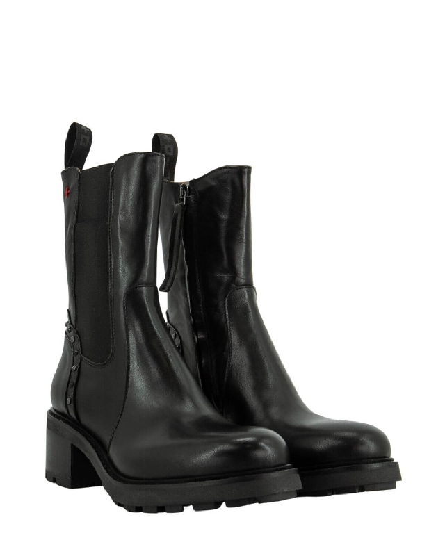 Lederstiefelette mit elastischen Seiteneinsätzen. Reißverschluss. Stollensohle.