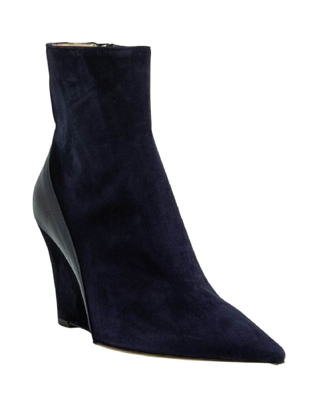 Stiefelette aus Wildleder mit Lederdetails. Keilabsatz. Reißverschluss.