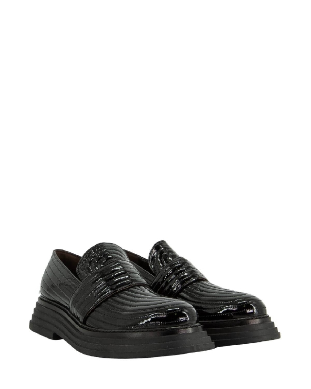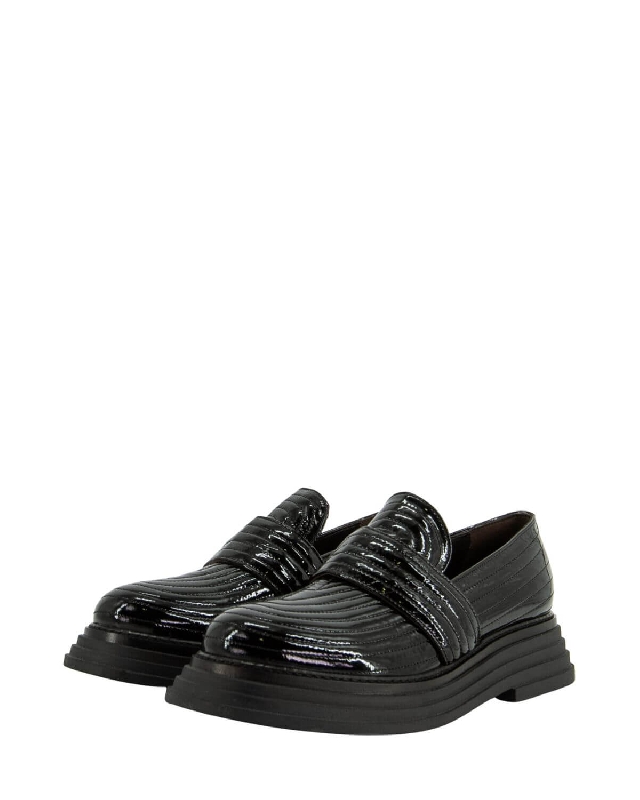 Lederschuhe. Lacklederschuhe. Niedriger Absatz. Runde Form.