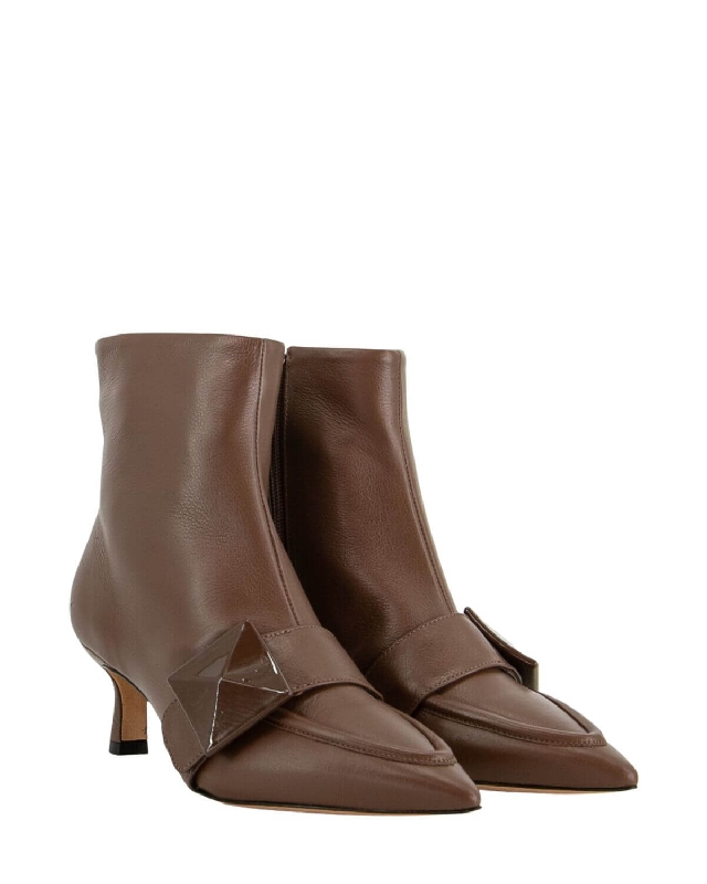 Lederschuhe. Duenner Absatz. Spitze Schuhe. Seitlicher Zipverschluss.