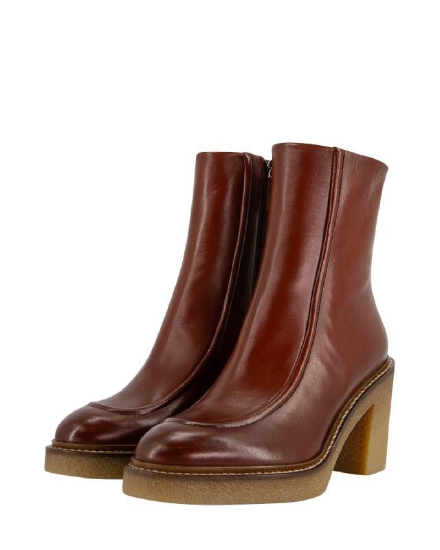 Lederschuhe. Breiter Absatz. Seitlicher Zipverschluss.