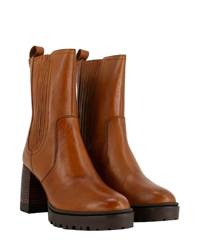 Lederschuhe. Elastischer Einsatz an den Aussenseiten. Breiter Absatz. Runde Form. Stollensohle.