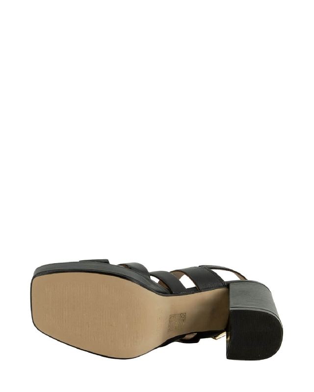 Lederschuhe. Breiter Absatz. Hoher Absatz. Breite Schuhspitze. Gummisohle. Riemenverschluss.