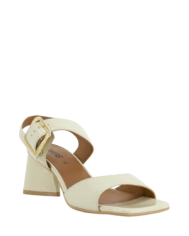 Lederschuhe. Breiter Absatz. Breite Schuhspitze. Riemenverschluss.