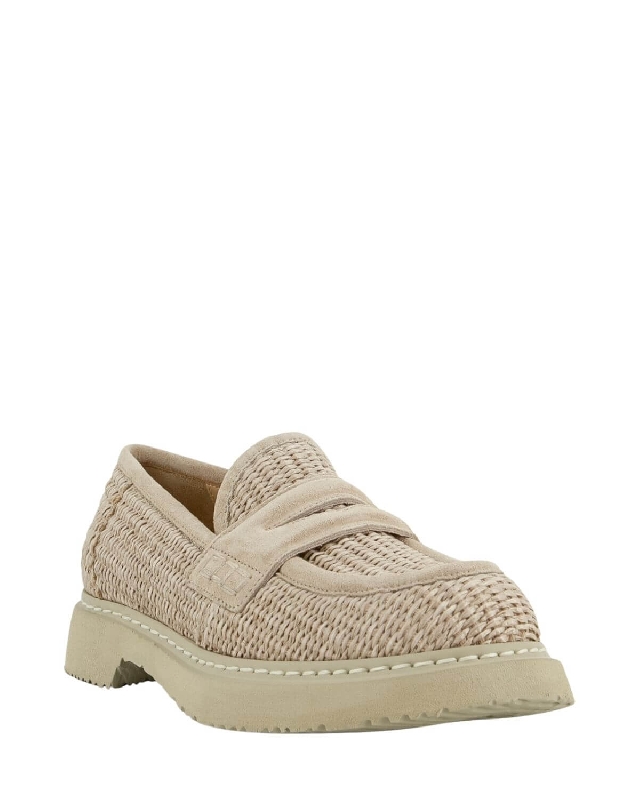Außen: Leder und Stoff; Innen: Leder; Sohle: Gummi.