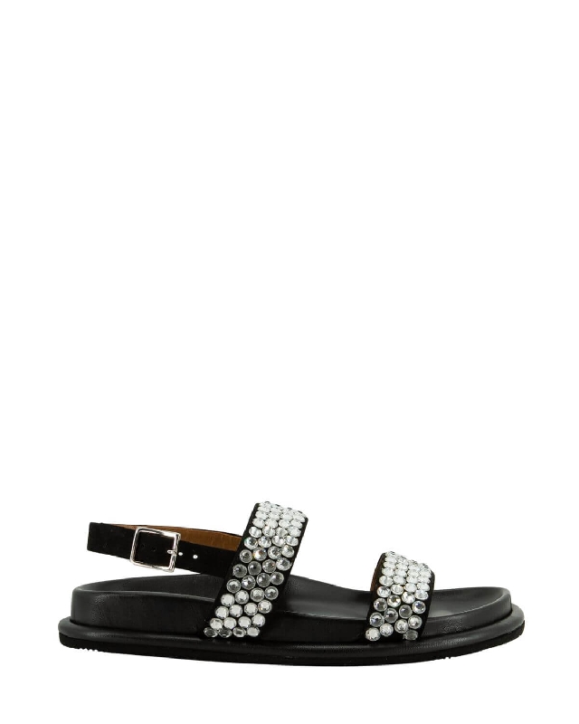 Lederschuhe. Schmucksteinaccessoire. Runde Form. Gummisohle. Riemenverschluss.