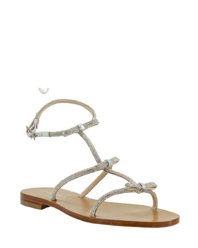 Diese Sandale ist ganz aus weichem Leder gefertigt und hat ein mit Juwelen verziertes Obermaterial. Sohle aus toskanischem Leder mit Logo.