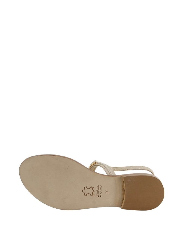 Diese Sandale ist ganz aus weichem Leder gefertigt und hat ein mit Juwelen verziertes Obermaterial. Sohle aus toskanischem Leder mit Logo.