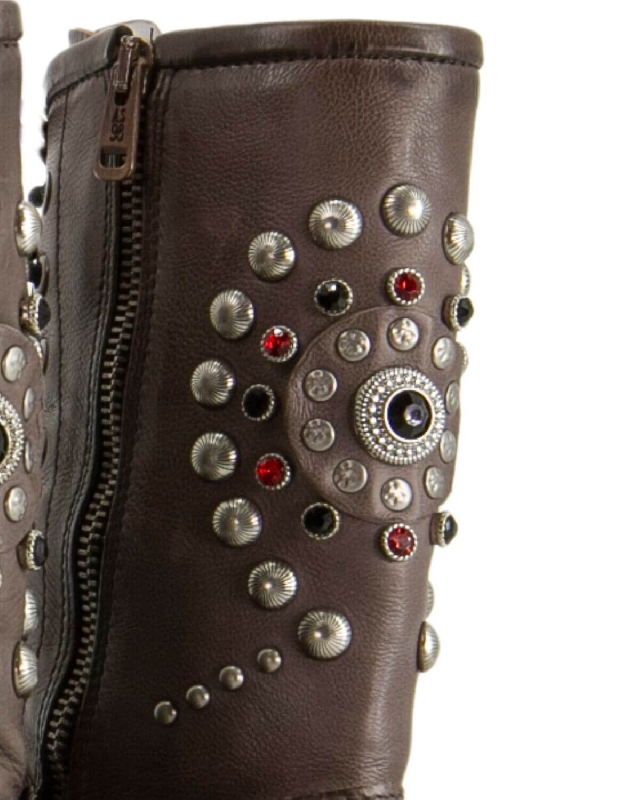 Alle Besonderheiten der Schuhmacherkunst wurden bewahrt: die Exzellenz der Rohstoffe, die Liebe zum Detail und die Handwerkskunst. Diese Aspekte kennzeichnen die Marke A.S.98 und verleihen ihr eine herausragende Position im Bereich der Lederfußbekleidung für Männer und Frauen. Lederschuhe. Schmucksteinaccessoire. Niedriger Absatz. Runde Form. Gummisohle. Seitlicher Zipverschluss. Schnuersenkel(verschluss). Riemenverschluss. Die Farbe des Artikels kann, je nach Gerät, das für die Navigation verwendet wird, leicht variieren.