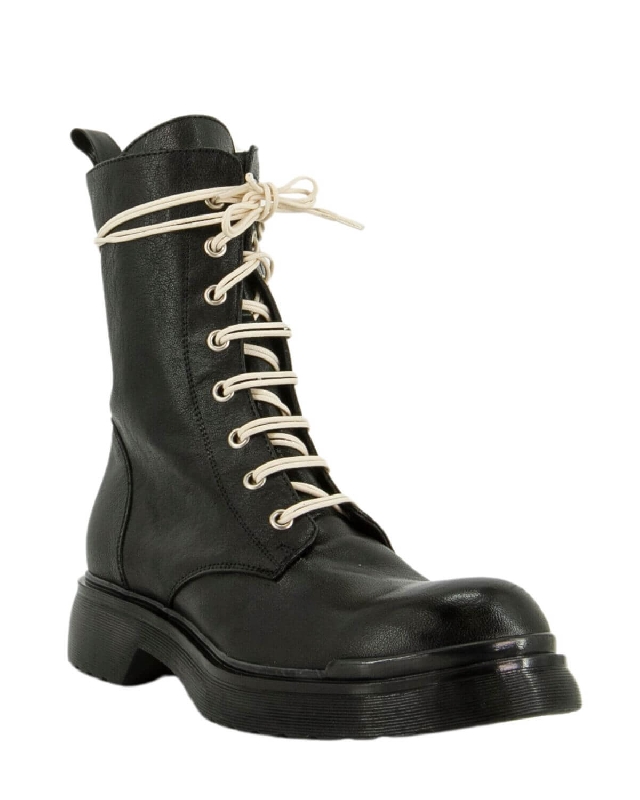 Lederschuhe. Niedriger Absatz. Runde Form. Gummisohle. Schnuersenkel(verschluss). Die Farbe des Artikels kann, je nach Gerät, das für die Navigation verwendet wird, leicht variieren.