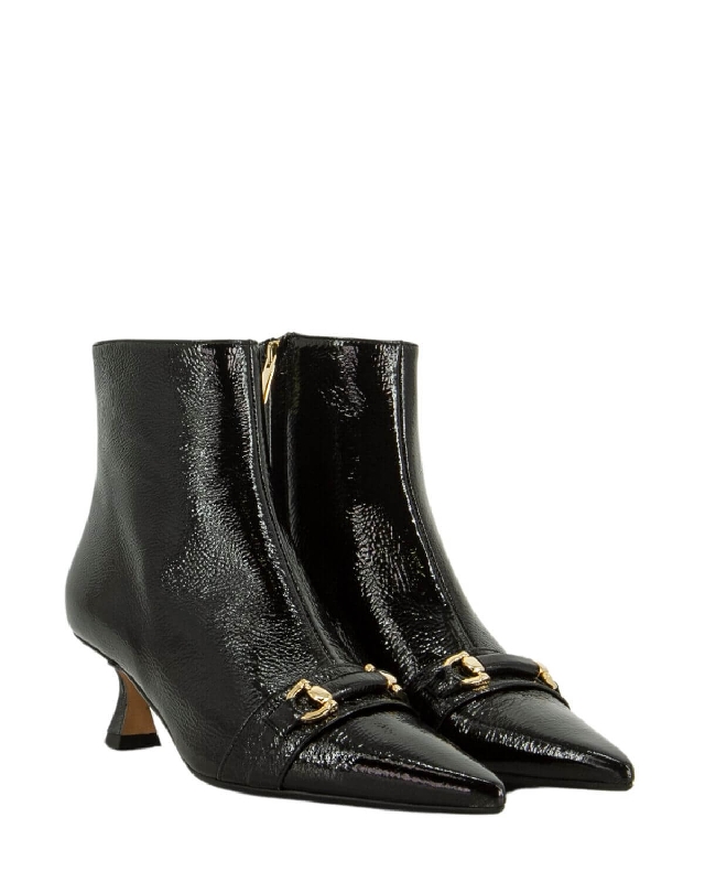 Lederschuhe. Metallisches Detail an der Schuhspitze. Duenner Absatz. Mittelhoher Absatz. Spitze Schuhe. Spitze Form. Gummisohle. Die Farbe des Artikels kann, je nach Gerät, das für die Navigation verwendet wird, leicht variieren.