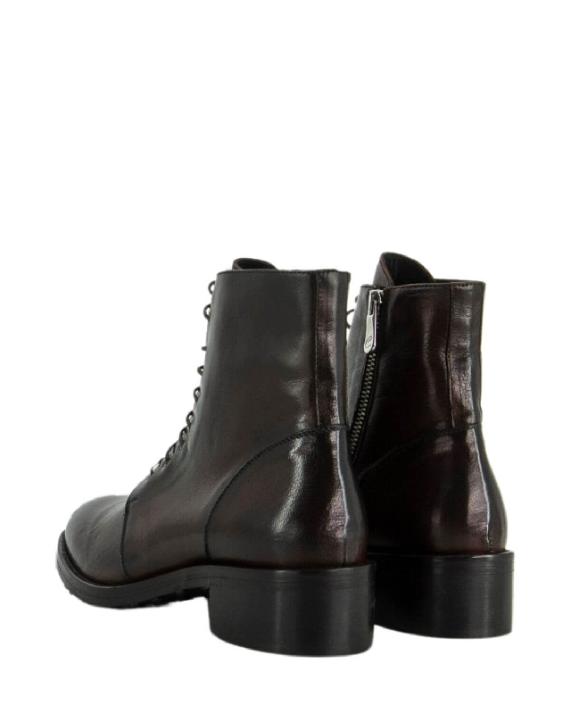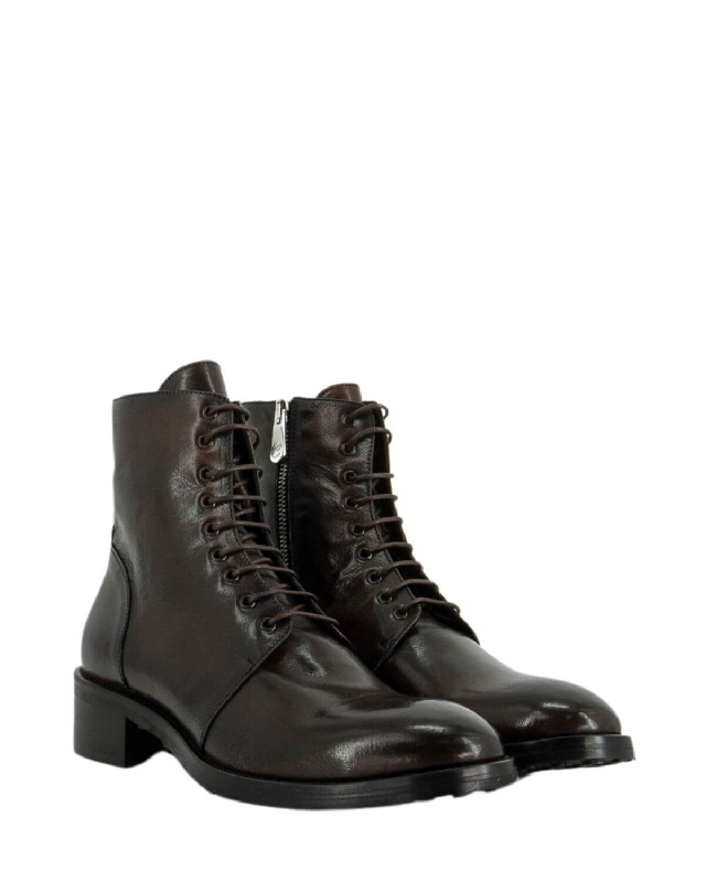 Die braunen Lederstiefeletten bieten zeitlose Eleganz. Das klassische Design passt perfekt zu jedem Outfit und macht sie ideal für jeden Anlass, von leger bis formell. Ihre Konstruktion garantiert Komfort und Halt und macht sie zu einer perfekten Wahl für den Alltag. Lederschuhe. Niedriger Absatz. Abgerundete Schuhspitze. Gummisohle. Schnuerverschluss. Die Farbe des Artikels kann, je nach Gerät, das für die Navigation verwendet wird, leicht variieren.