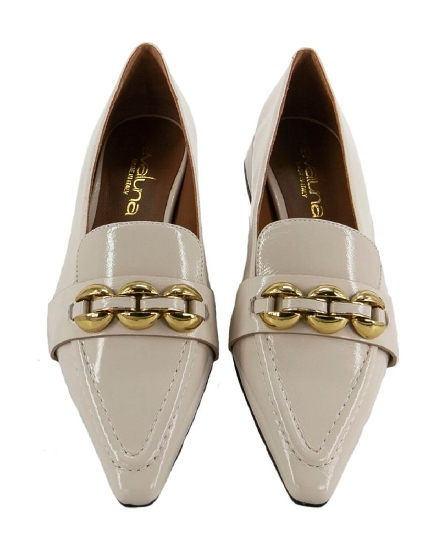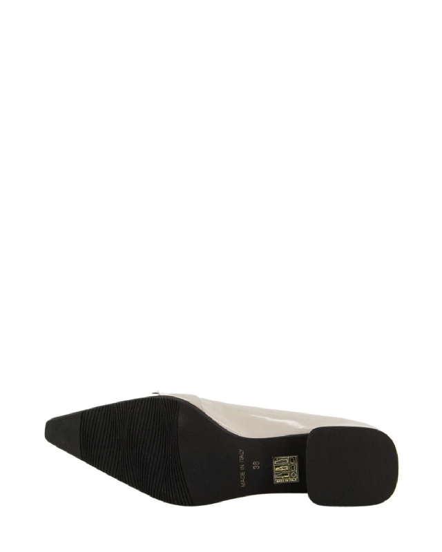 Dieser Slipper bietet einen eleganten und raffinierten Look. Durch seine Vielseitigkeit eignet er sich für verschiedene Anlässe, von der Arbeit bis zur Freizeit, und garantiert jederzeit Stil. Lederschuhe. Metallisches Detail an der Schuhspitze. Niedriger Absatz. Spitze Schuhe. Spitze Form. Gummisohle. Die Farbe des Artikels kann, je nach Gerät, das für die Navigation verwendet wird, leicht variieren.