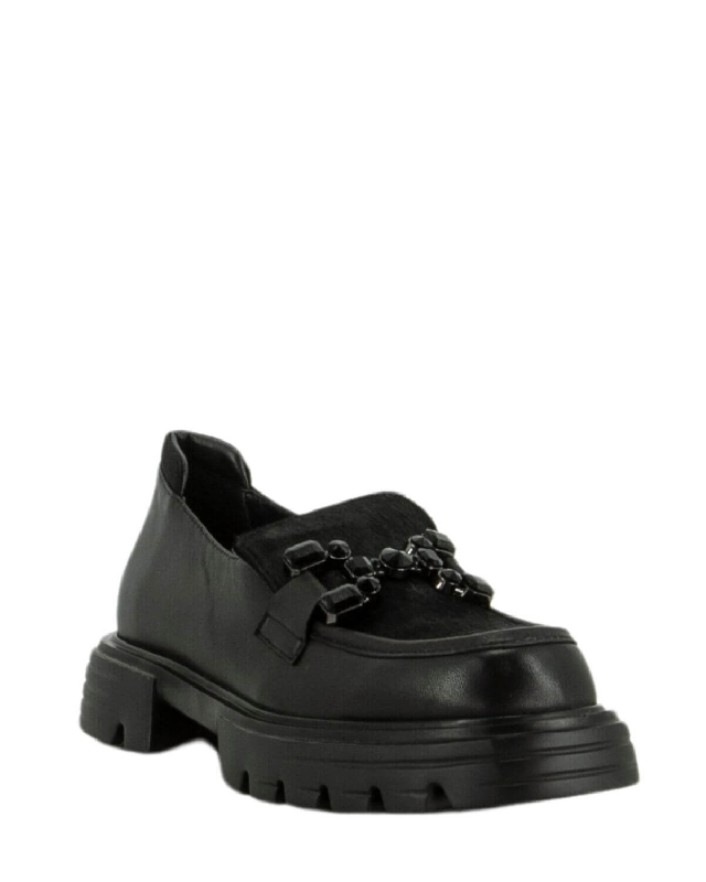Diese Linie ist für all jene gedacht, die Funktionalität mit einem ausgeprägten Sinn für Ästhetik verbinden und die perfekte Balance zwischen Komfort und Klasse finden wollen. Lederschuhe. Schmucksteinaccessoire. Niedriger Absatz. Runde Form. Gummisohle. Die Farbe des Artikels kann, je nach Gerät, das für die Navigation verwendet wird, leicht variieren.
