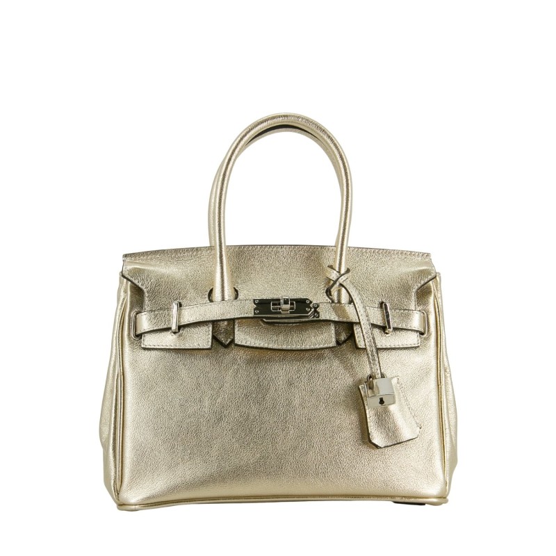 Elegance and craftsmanship come together in the Venetian Style leather bag, an iconic accessory designed for the modern woman who loves to stand out with class. Made from high-quality grained leather, this bag is defined by its structured and timeless design, enhanced by metallic details and a refined turn-lock closure.