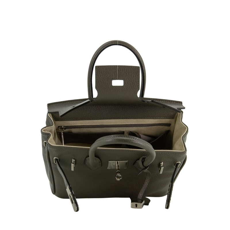 Elegance and craftsmanship come together in the Venetian Style leather bag, an iconic accessory designed for the modern woman who loves to stand out with class. Made from high-quality grained leather, this bag is defined by its structured and timeless design, enhanced by metallic details and a refined turn-lock closure.