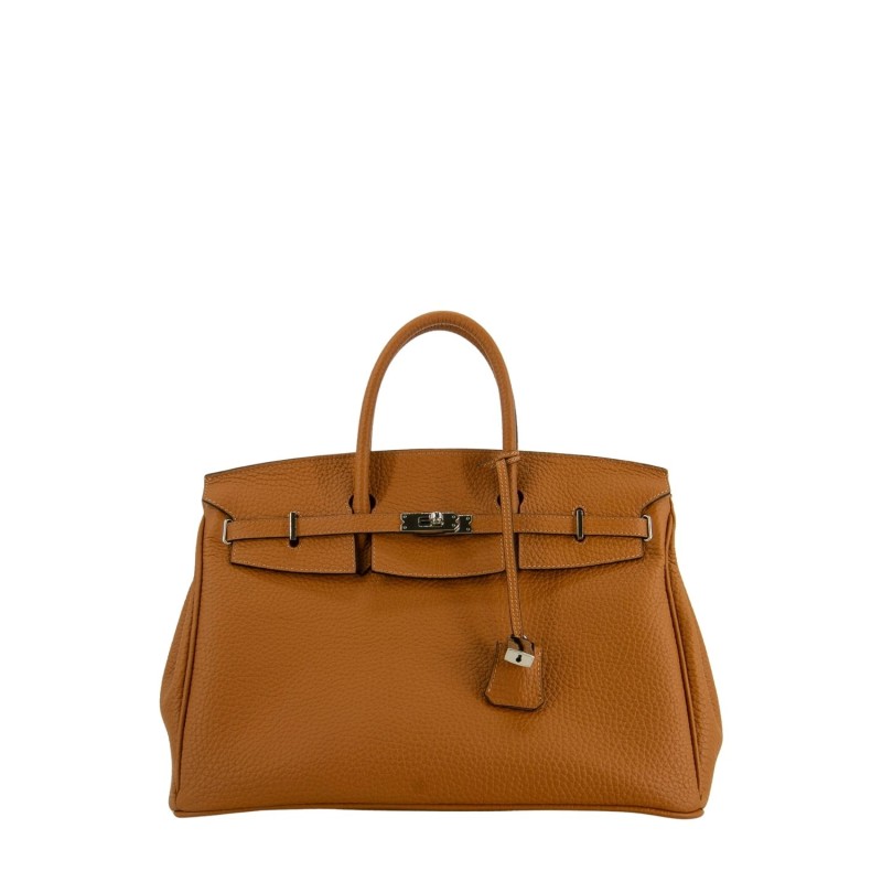 Elegance and craftsmanship come together in the Venetian Style leather bag, an iconic accessory designed for the modern woman who loves to stand out with class. Made from high-quality grained leather, this bag is defined by its structured and timeless design, enhanced by metallic details and a refined turn-lock closure.