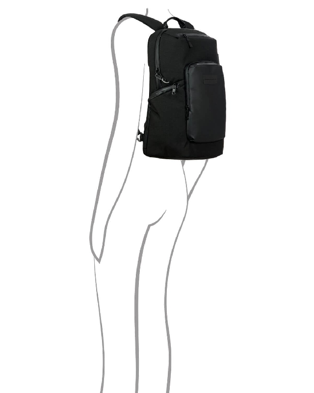 Porsche Design men's backpack in modern design with trolley link. Notebook compartment for 13 laptops and functional zipped pockets. Rain cover included.