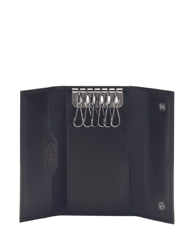 Large folding key case with press stud fastening. Smooth calfskin with embossed Porsche Design logo and snap hook for 6 keys.