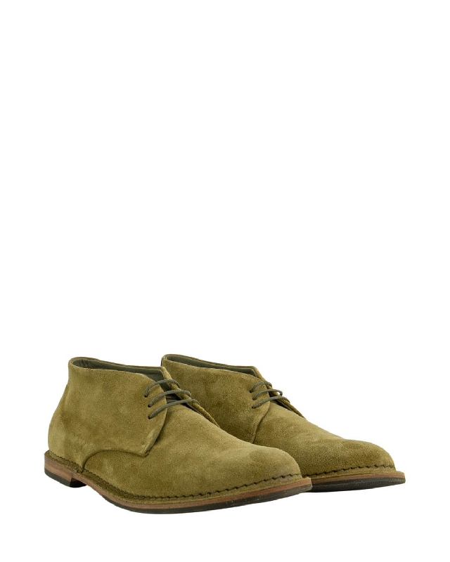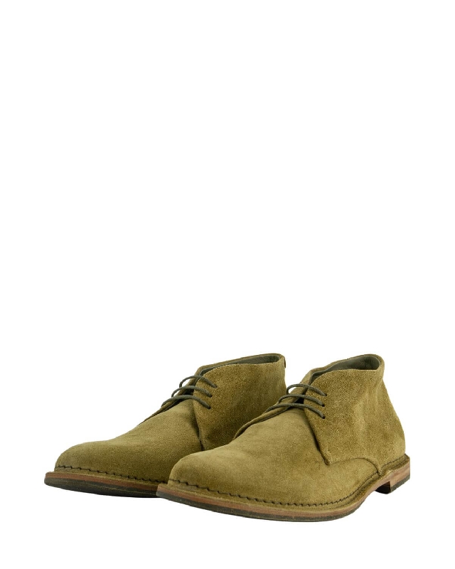 Suede shoes with round toe. Leather and rubber sole. Lace fastening.