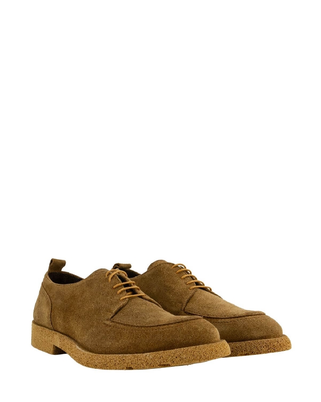 Suede shoes: Rounded tip Rubber sole. Clasp with laces.