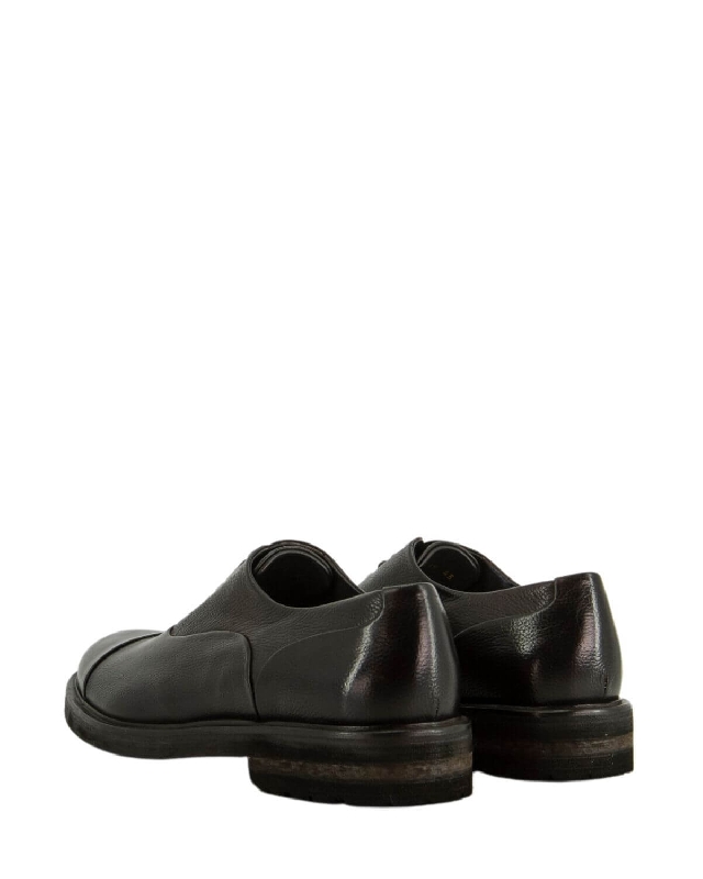 Leather shoes. Low heel. Rounded tip Rubber sole. Clasp with laces. The colour of the article may vary slightly depending on the device used for navigation.