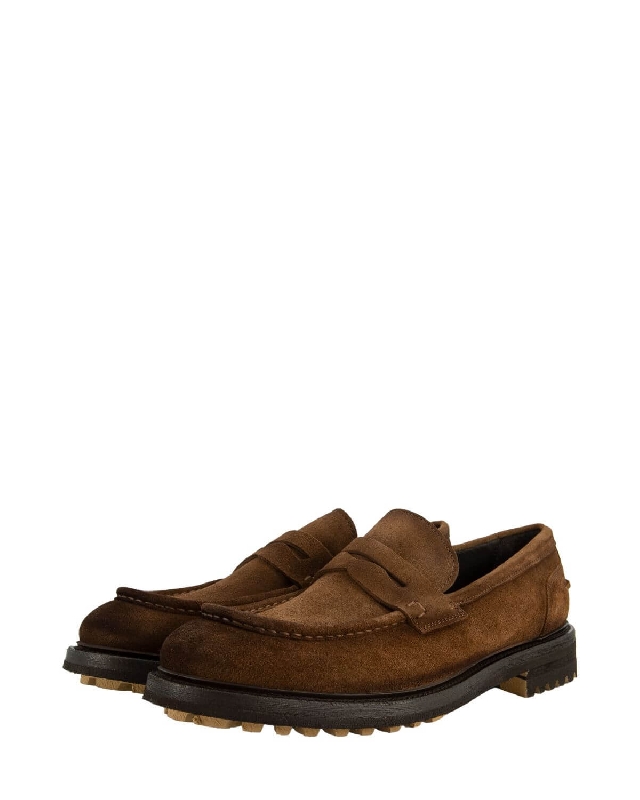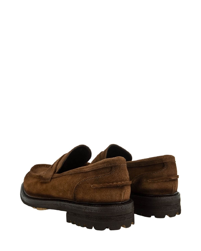 Suede moccasins. Thick heel.