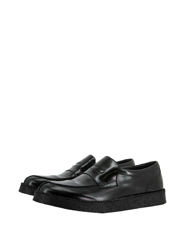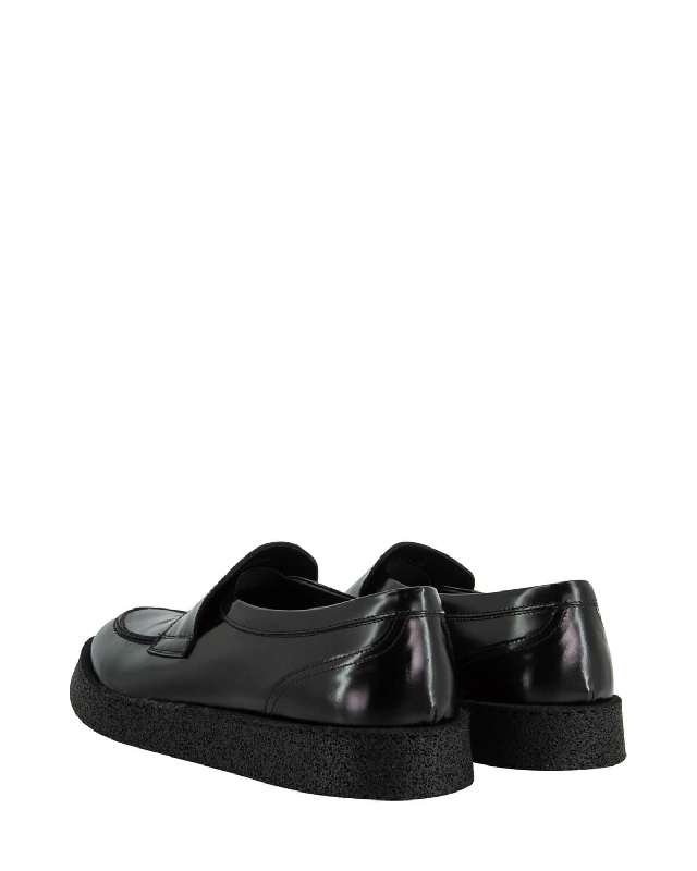 Moccasin with round shape and 20 heel, shoe bottom made of sewn Rubex material. Material brushed calfskin