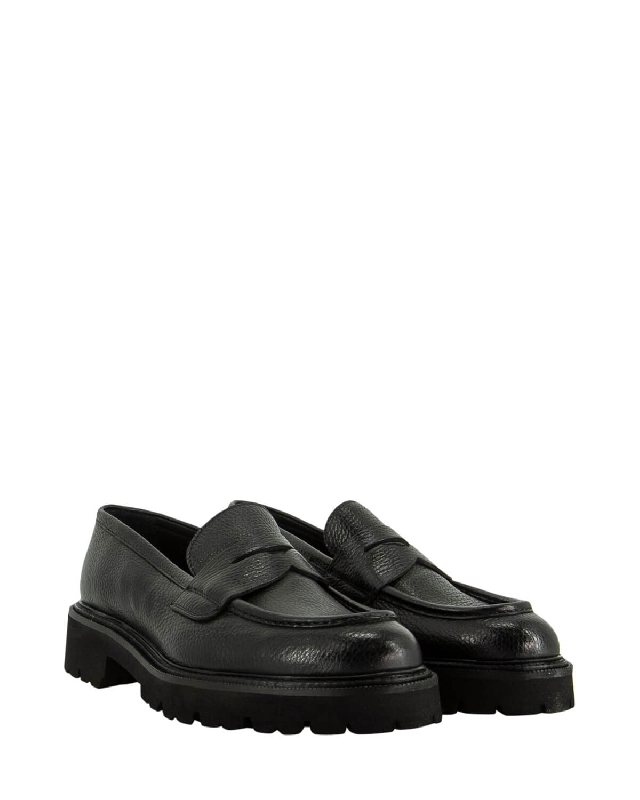 These elegant loafers, featuring a black sole, offer a sophisticated and versatile design, ideal for any occasion. They are a perfect addition to the wardrobe of those seeking style and practicality. Leather shoes. Low heel. Rounded tip Rubber sole. The colour of the article may vary slightly depending on the device used for navigation.
