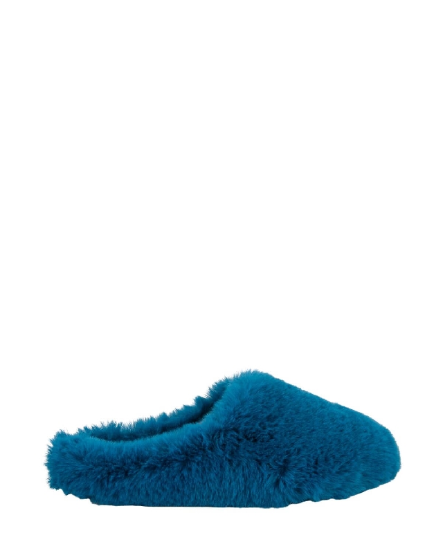 Slippers made of soft, long fur.