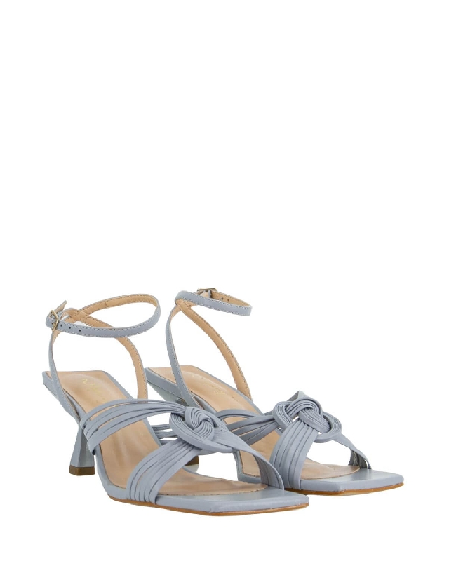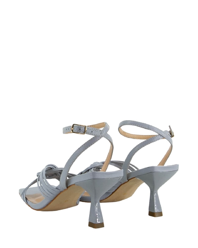 Sandals with leather straps. Strap and buckle closure at the ankle. Square toe.