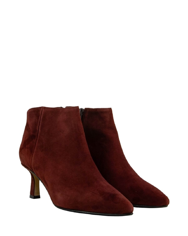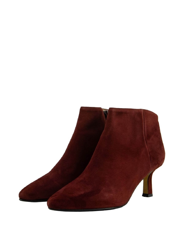 Suede ankle boot. Side zip. Fine heel. Pointed toe.