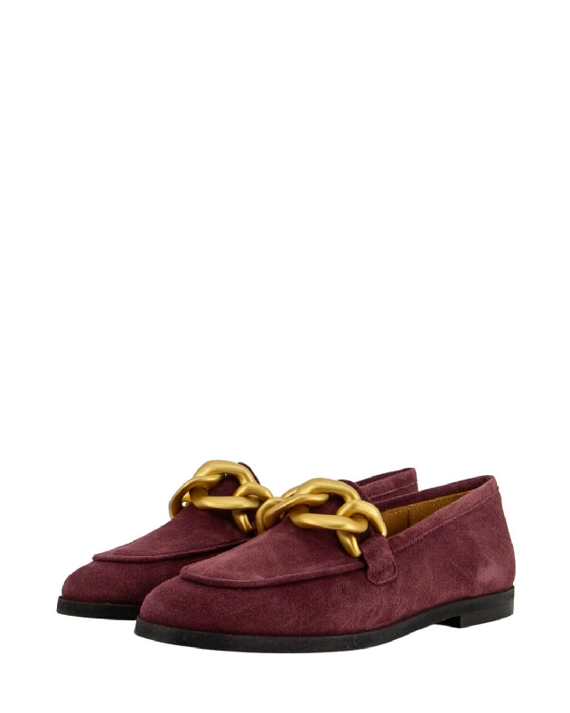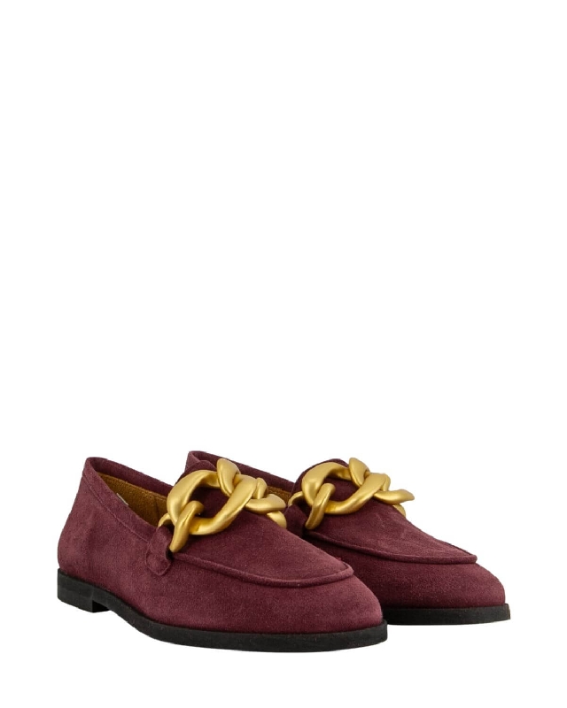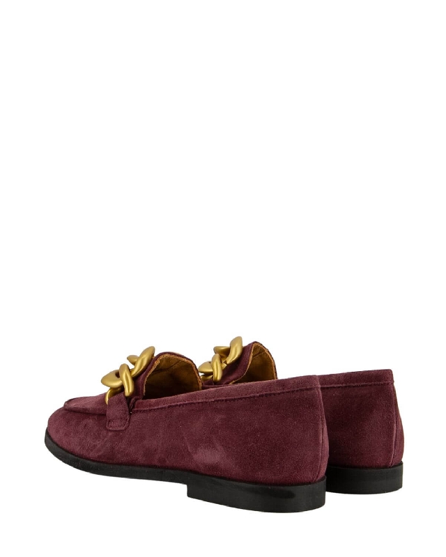 Suede moccasins with chain accessory. Low heel. Round toe.