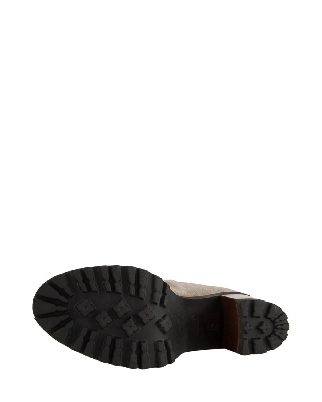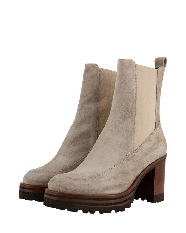 Suede shoes: Elastic insets laterally. Wide heel. Rounded tip