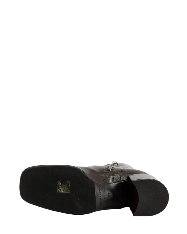 Leather shoes. Wide heel. Square toed tip. Clasp with lateral zip.